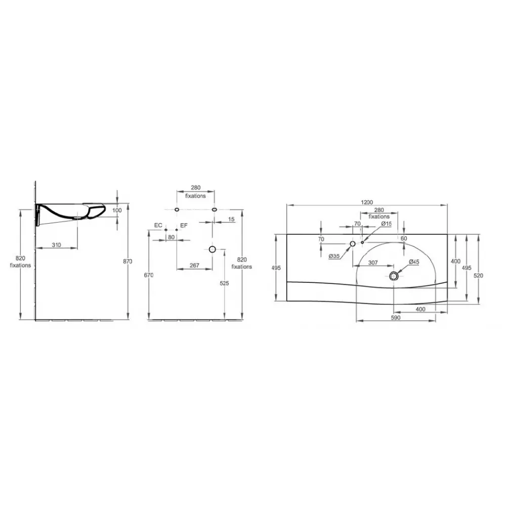 Технические характеристики Модуль с раковиной Stillness 120 см, натуральный дуб, смещенная установка раковины, подвесной монтаж E1292-09-00+EB2001-P6 Jacob Delafon