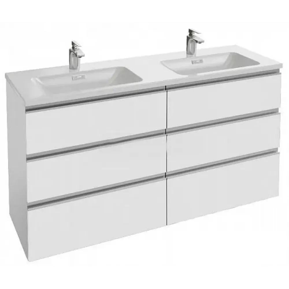 Модуль с раковиной Vox 140 см, белый блестящий, 6 выдвижных ящиков, 2я раковина, подвесной монтаж EB2100-DD1+EB2040-RA-G1C Jacob Delafon