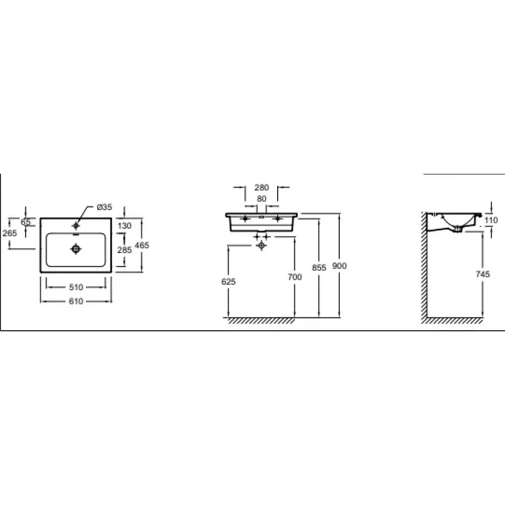 Разметка сверления отверстия для смесителя: с 1 отверстием для смесителя.