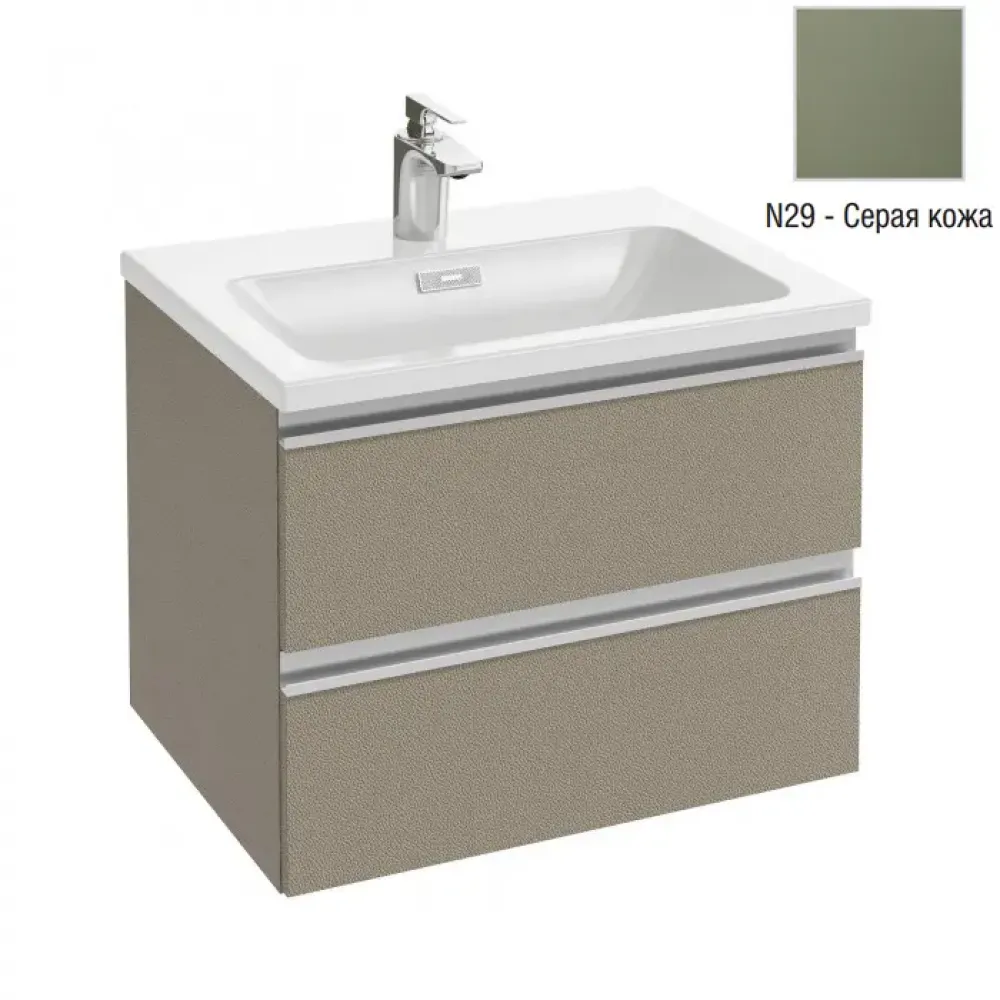 Vox 60см, тумба с раковиной, подвесной монтаж, серая кожа, гладкая нижняя поверхность для установки на мебель, арт. EXAF112-Z-00+EB2030-RA-N29, Jacob