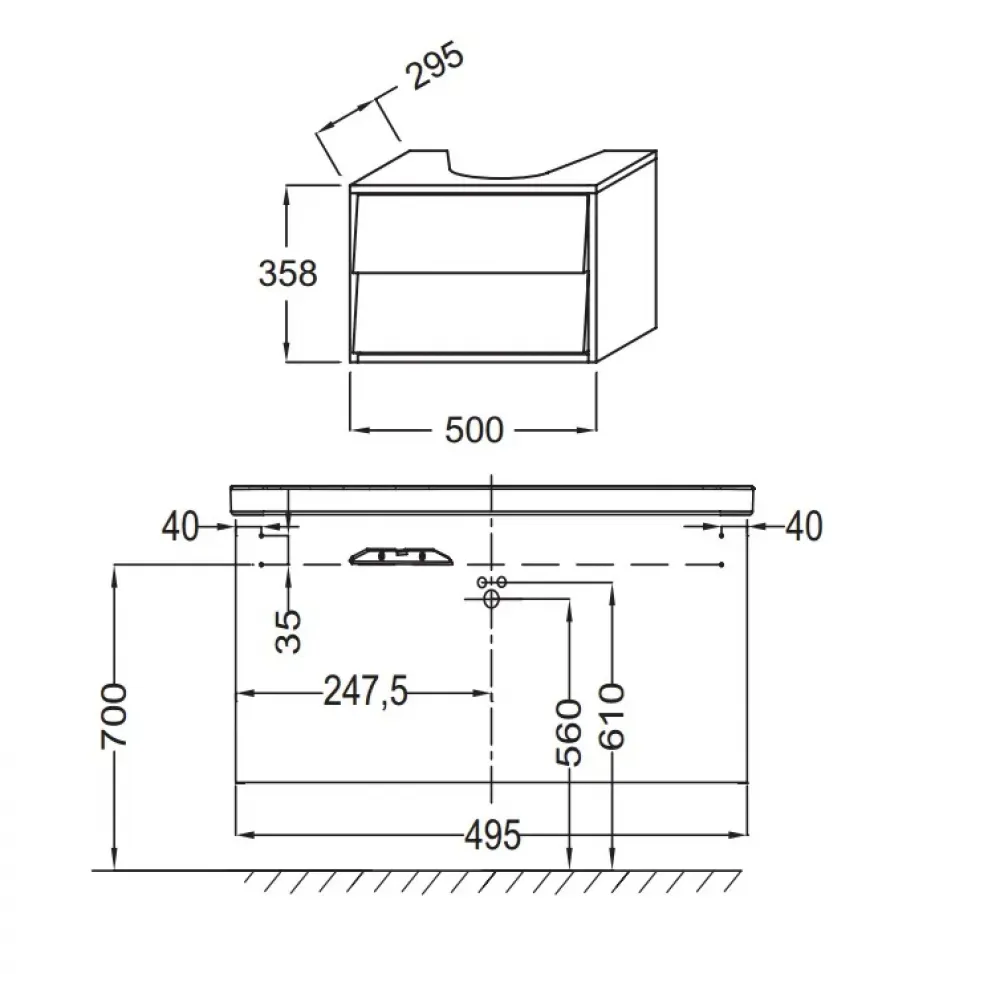Технические характеристики Модуль под раковину Escale 50х29,5х35,8 см, серый титан EB763-N21 Jacob Delafon