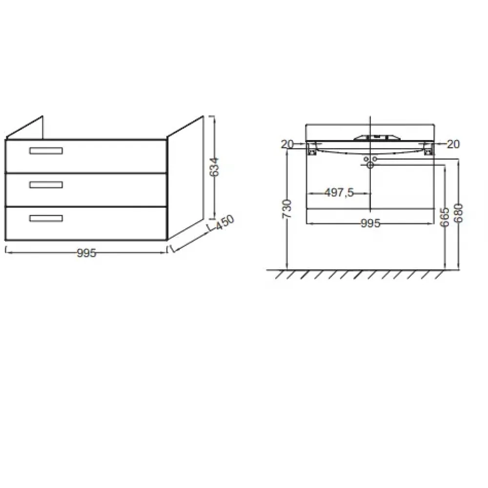 Технические характеристики Модуль под раковину Formilia Rythmik 99,5х45х63,4 см, арлингтонский дуб EB1310-E70 Jacob Delafon