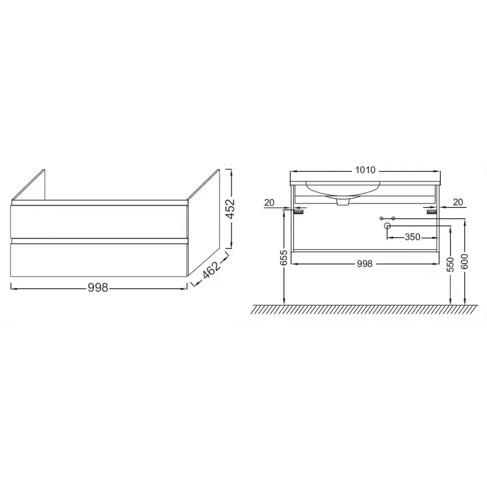 Технические характеристики Модуль под раковину Madeleine 100х46х45 см, раковина справа, 2 ящика, белый глянцевый EB2055-J5 Jacob Delafon