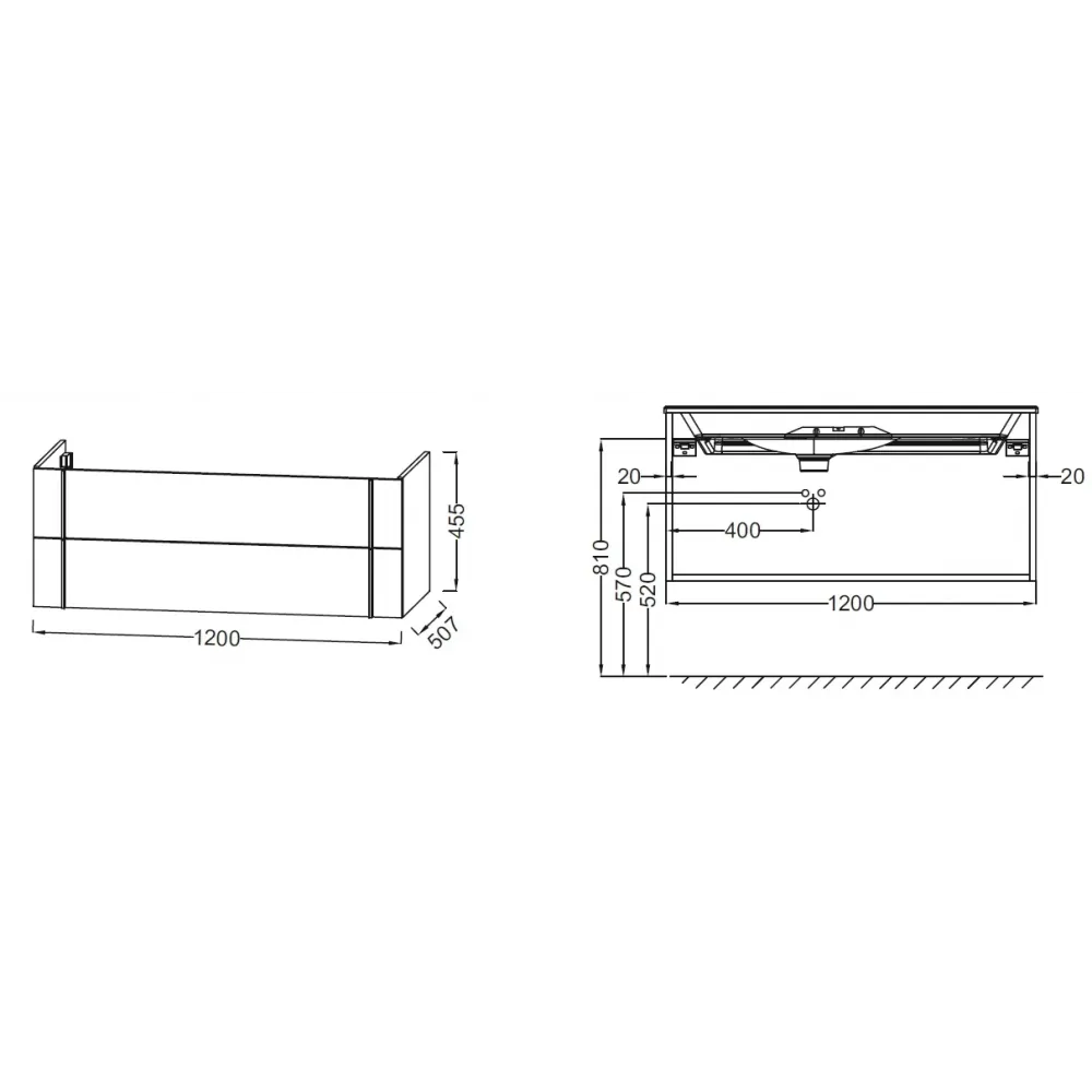 Технические характеристики Модуль под раковину Nouvelle Vague 120х50,8х45,2 см, 2 ящика, аквамарин матовый, раковина слева EB3035-M43 Jacob Delafon