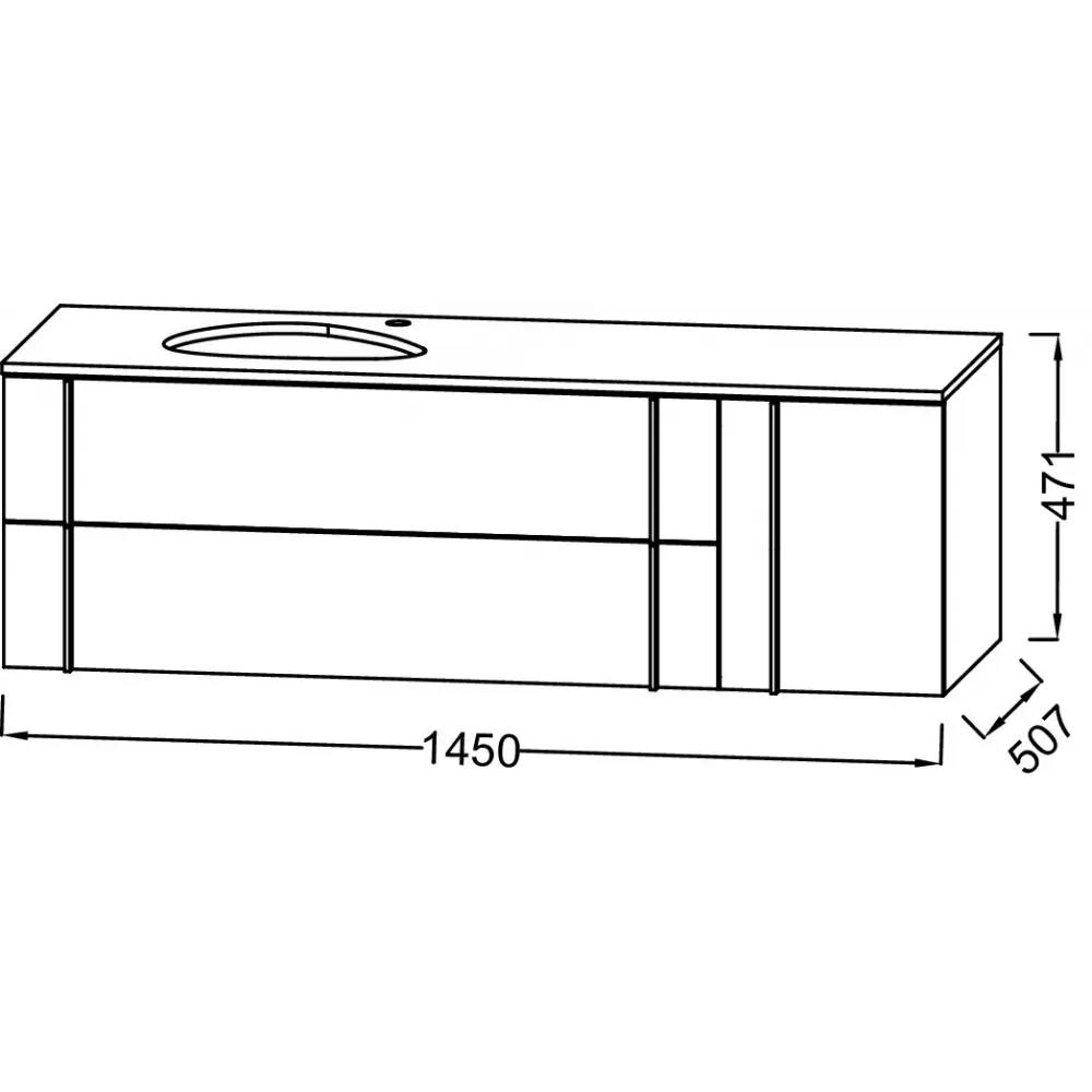 Технические характеристики Модуль под раковину Nouvelle Vague 145х50,7х47,1 см, белый блестящий, 2 выдвижных ящика, 1 бутылочница справа EB3043RU-N18 Jacob Delafon