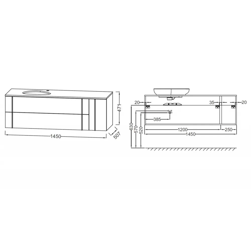 Технические характеристики Модуль под раковину Nouvelle Vague 145х51х47 см, фактурный дуб, 2 ящика, 1 дверца EB3044-E73 Jacob Delafon