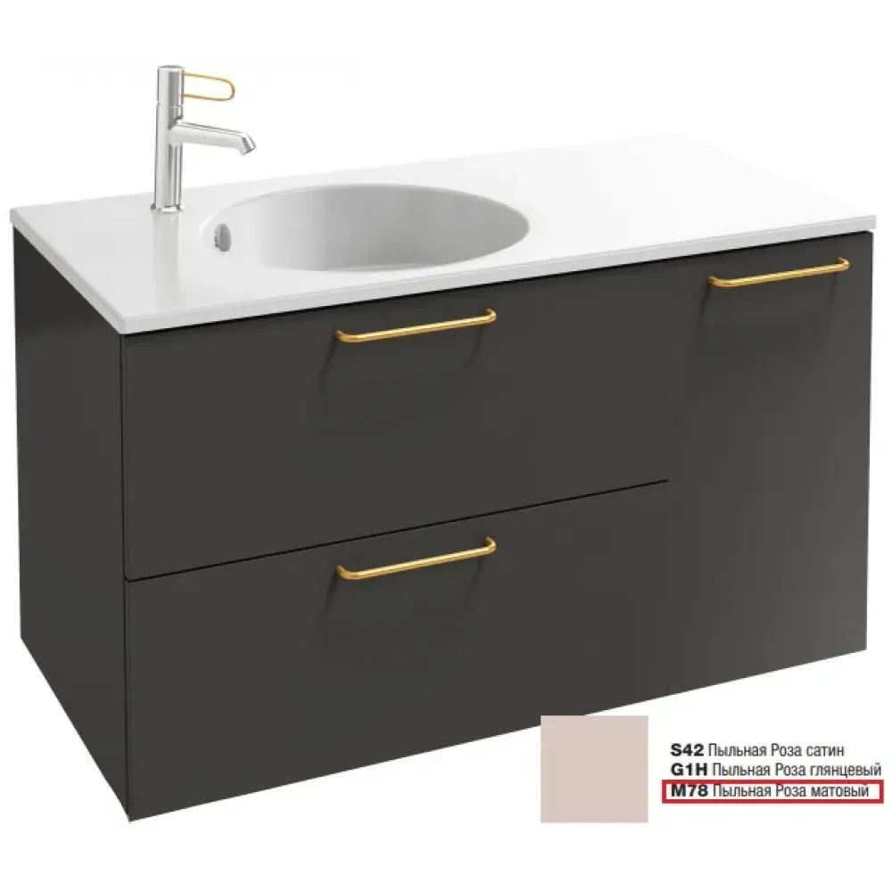 Технические характеристики Модуль под раковину Odeon Rive Gauche 100х50,8х56,8 см, 2 ящика + 1 дверца, пыльная роза матовый, ручки - золотой EB2544-R8-M78 Jacob Delafon