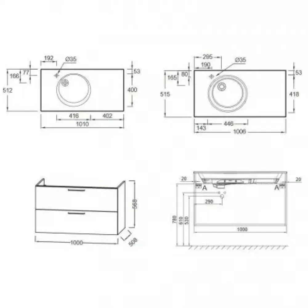 Технические характеристики Модуль под раковину Odeon Rive Gauche 100х50,8х56,8 см, 2 ящика, ручки - черный, черный матовый EB2524-R9-M61 Jacob Delafon