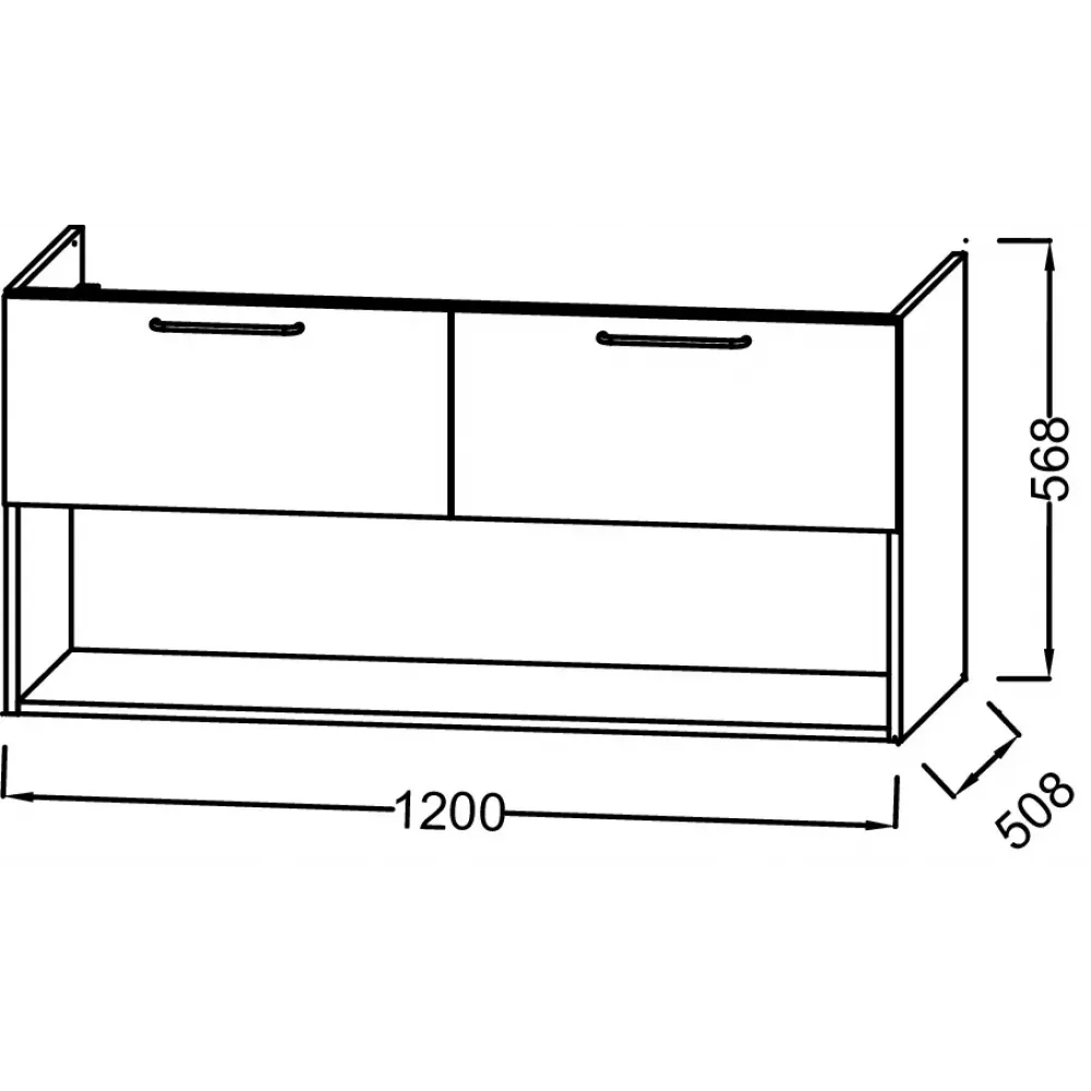 Технические характеристики Модуль под раковину Odeon Rive Gauche 120х50,8х56,8 см, 2 ящика, 1 ниша, ручки черные, дуб табак EB2555-R9-E52 Jacob Delafon
