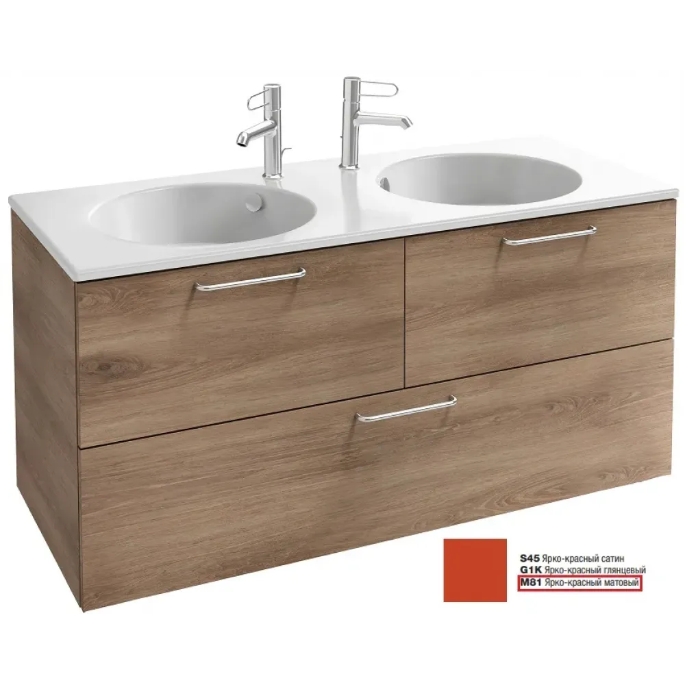 Технические характеристики Модуль под раковину Odeon Rive Gauche 120х50,8х56,8 см, 3 ящика, ярко-красный матовый, ручки хром EB2545-R5-M81 Jacob Delafon