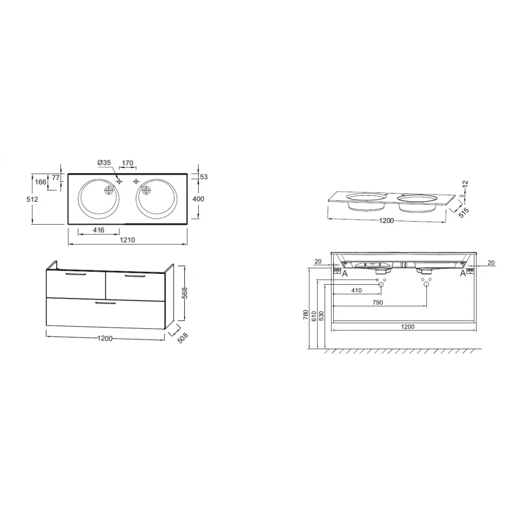 Мебель 120 см для раковины-столешницы EXAT112-Z или EB2565.