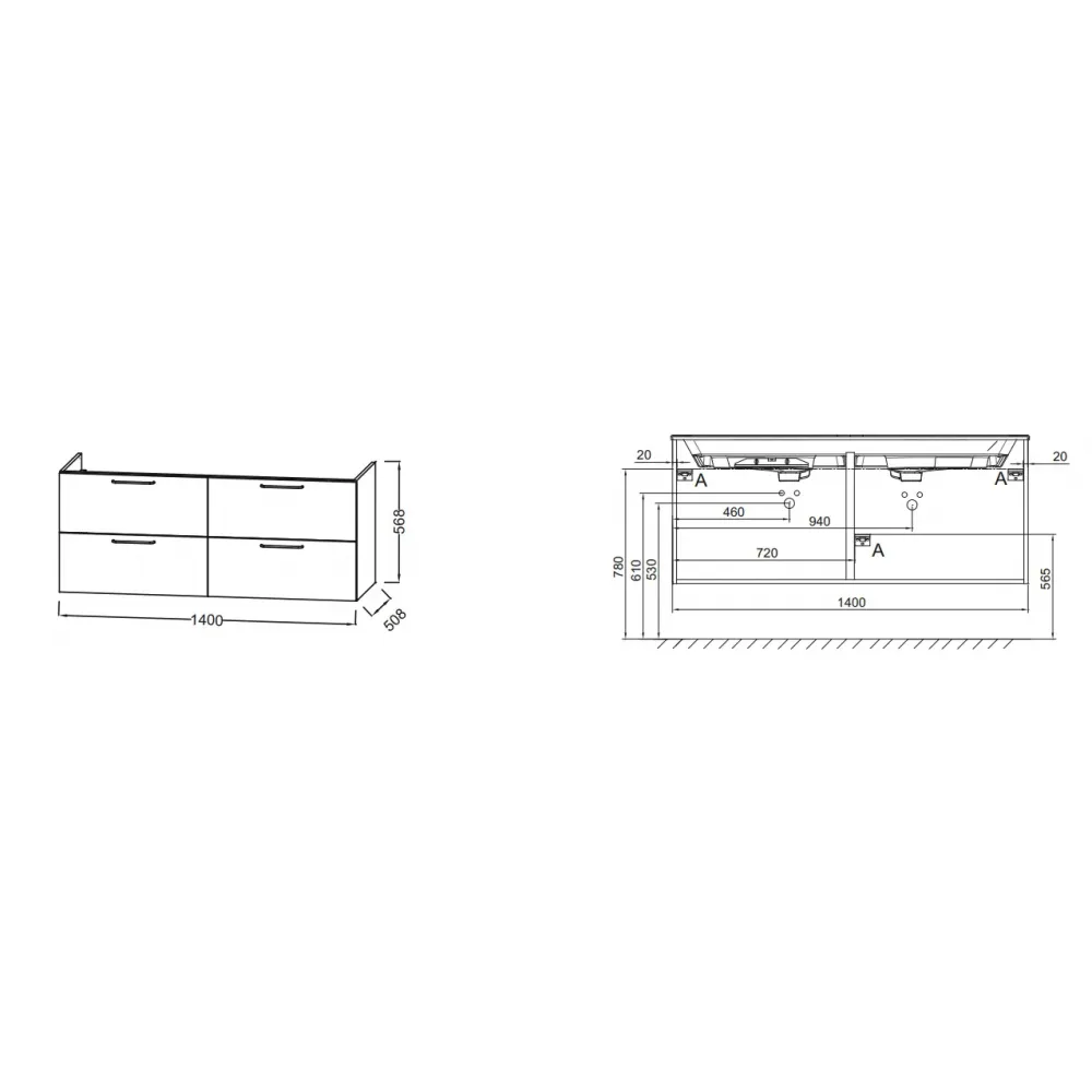 Мебель 140 см для раковины-столешницы EXAS112-Z или EB2566.