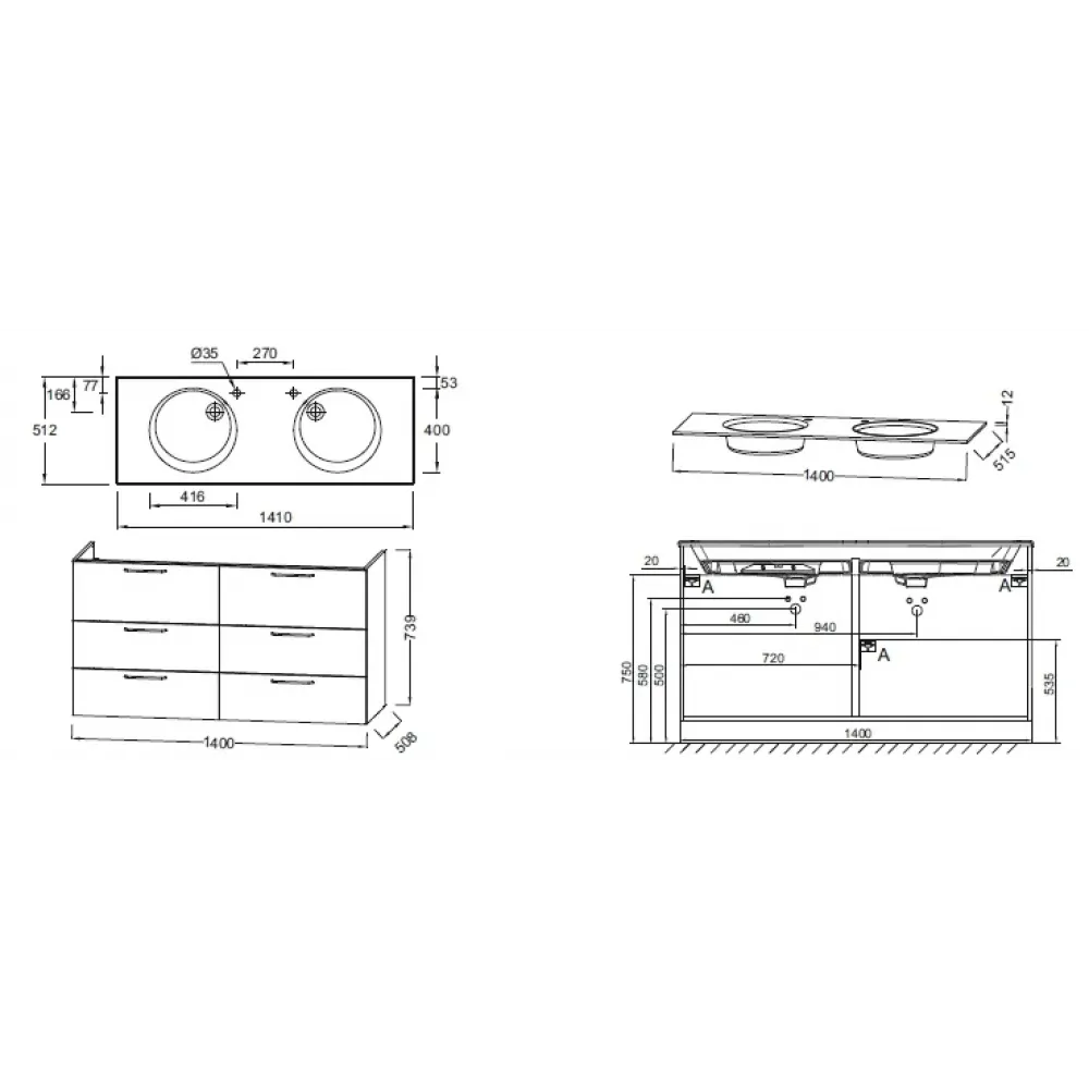 Технические характеристики Модуль под раковину Odeon Rive Gauche 140х50,8х73,9 см, 6 ящиков, жасмин матовый, золотые ручки EB2536-R8-M56 Jacob Delafon