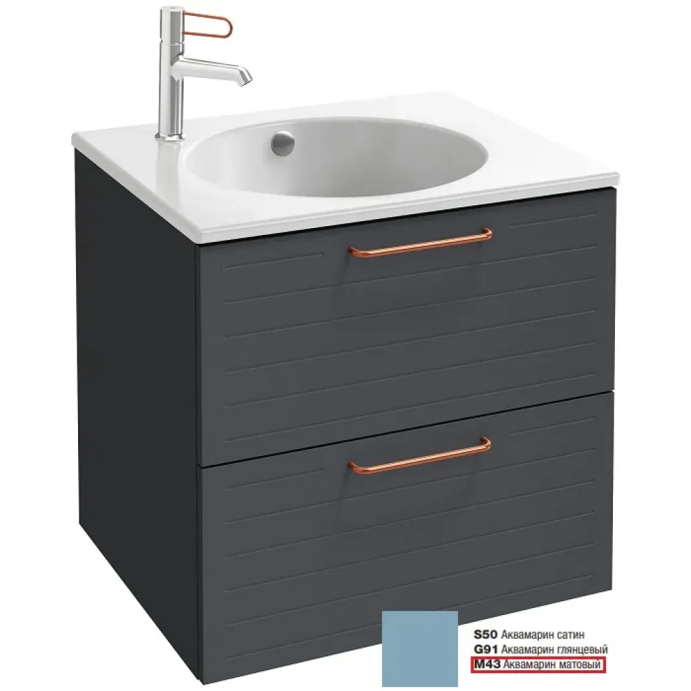 Модуль под раковину Odeon Rive Gauche 60х50,8х56,8 см, 2 ящика,медные ручки, аквамарин матовый EB2520-R7-M43 Jacob Delafon