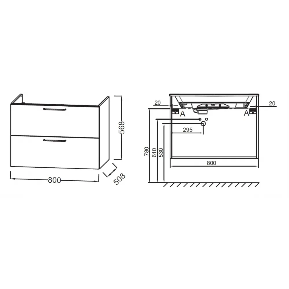 Технические характеристики Модуль под раковину Odeon Rive Gauche 80х50,8х56,8 см, 2 ящика, белый глянцевый, ручки хром EB2522-R5-N18 Jacob Delafon