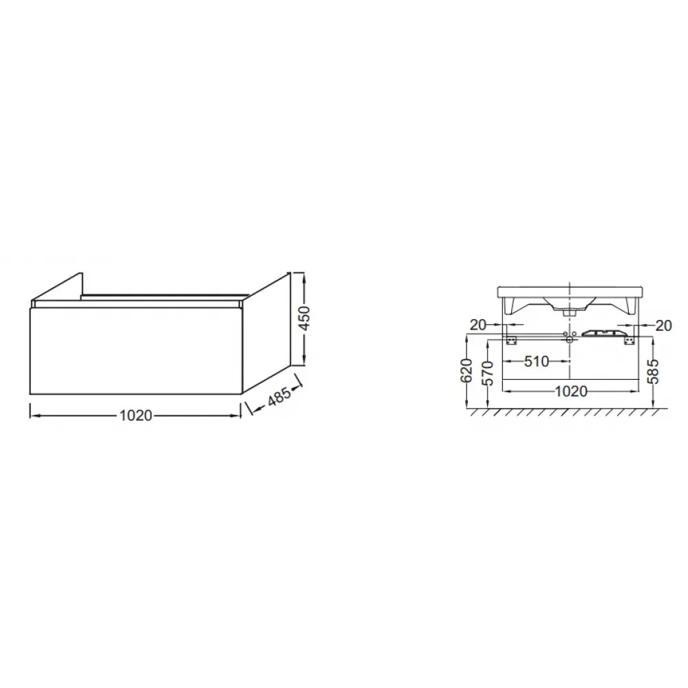 Технические характеристики Модуль под раковину Odeon Up 102х48,5х45 см, белый блестящий EB883-N18 Jacob Delafon