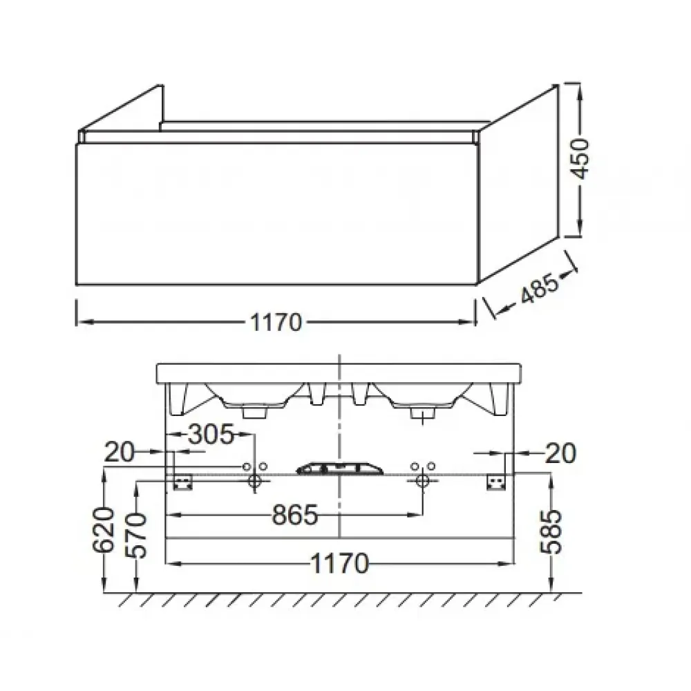 Технические характеристики Модуль под раковину Odeon Up 117х48,5х45 см, белый блестящий EB887-N18 Jacob Delafon