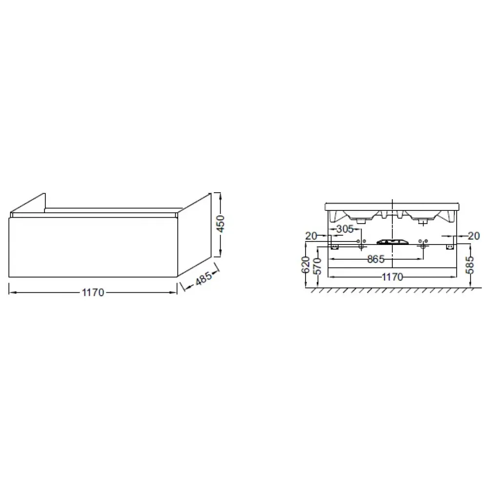 Технические характеристики Модуль под раковину Odeon Up 117х48,5х45 см, серый антрацит EB887-N14 Jacob Delafon