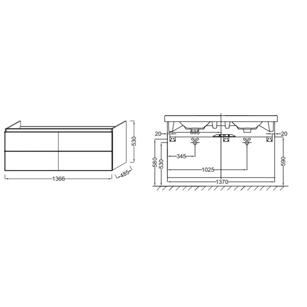 Технические характеристики Модуль под раковину Odeon Up 137х48,5х53 см, белый блестящий EB997-N18 Jacob Delafon