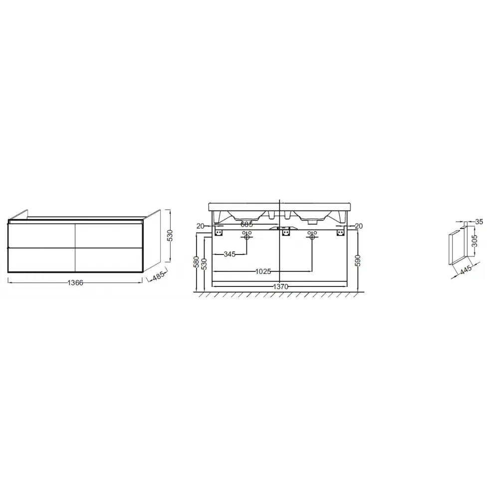 Технические характеристики Модуль под раковину Odeon Up 137х48,5х53 см, серый антрацит глянцевый, 4 ящика EB997-442 Jacob Delafon
