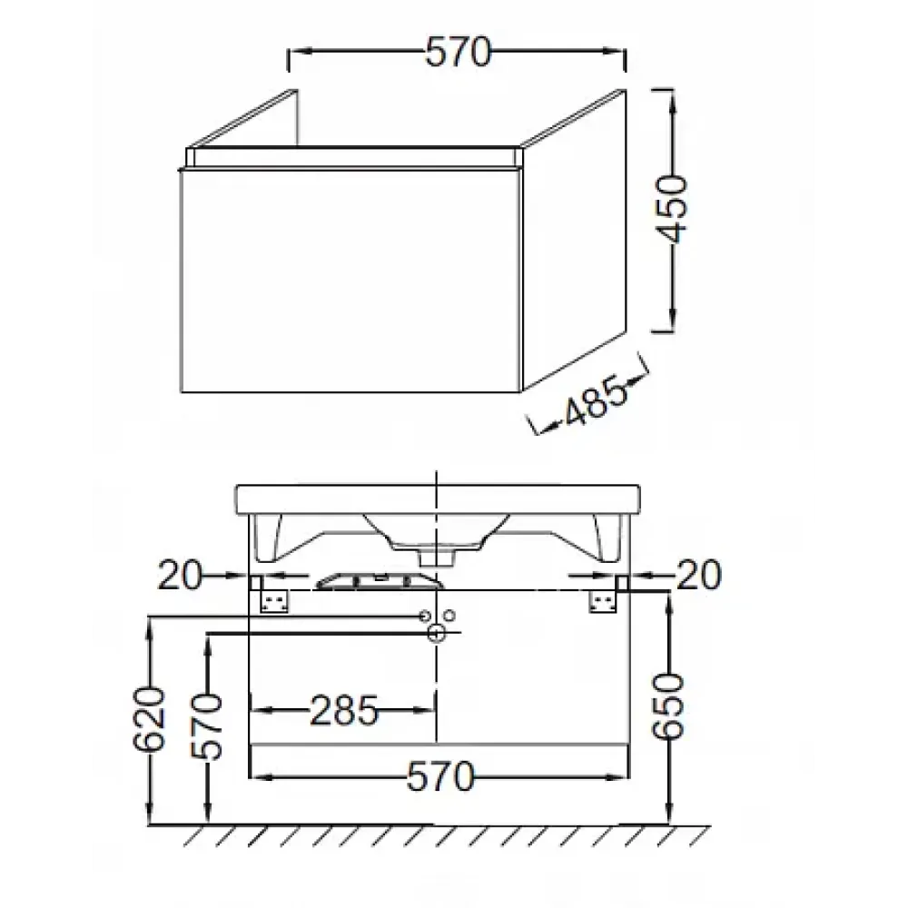 Технические характеристики Модуль под раковину Odeon Up 57х48,5х45 см, 1 ящик, серый дуб EB877-E71 Jacob Delafon