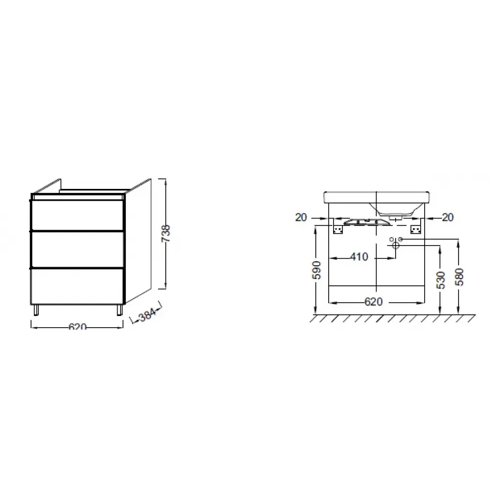 Мебель 62 см для раковины-столешницы Е4757G, левосторонняя.