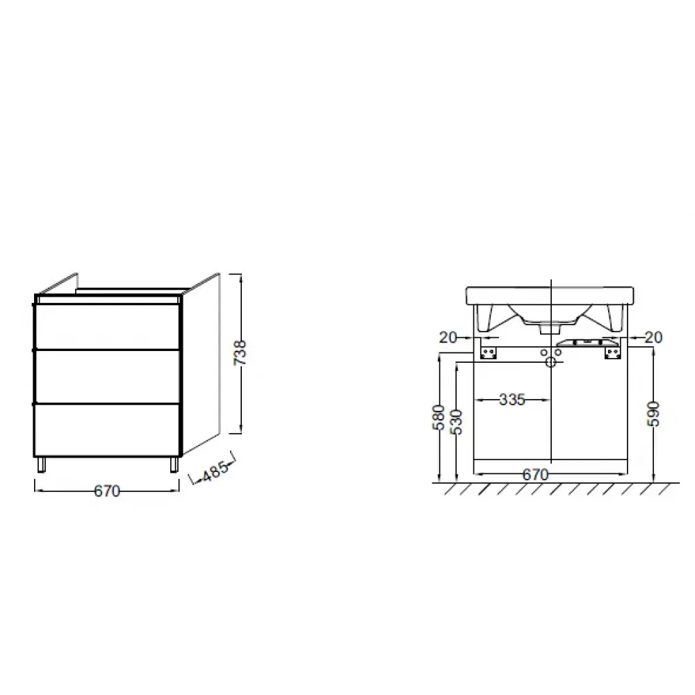 Мебель 67 см для раковины-столешницы Е4732.