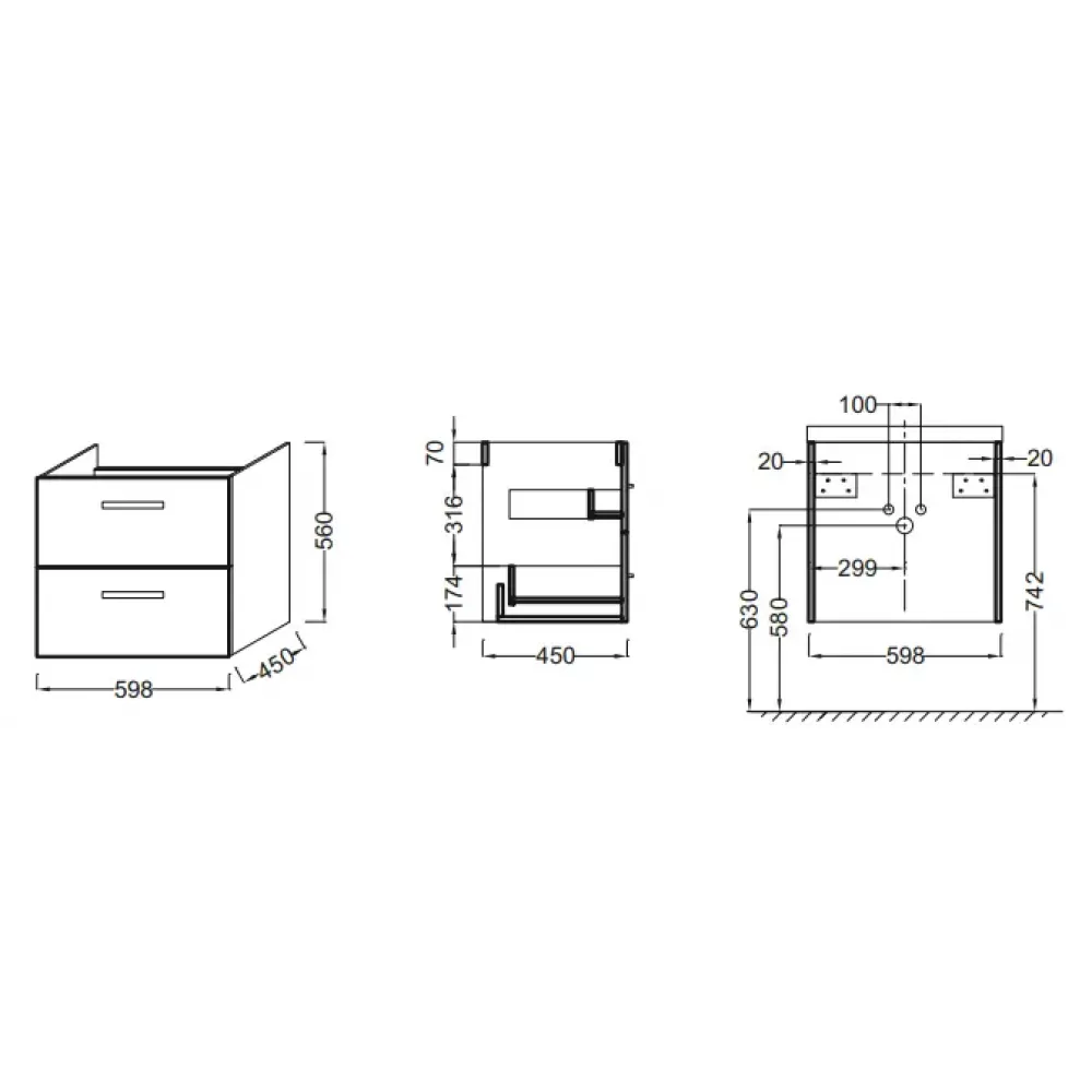Технические характеристики Модуль под раковину Ola 59,8х45х56 см, темный дуб, 2 ящика EB390RU-NR Jacob Delafon