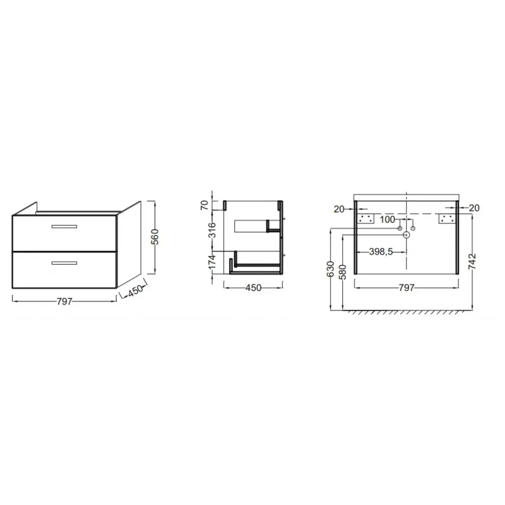 Технические характеристики Модуль под раковину Ola 79,6х45х56 см, тёмный дуб EB391RU-NR Jacob Delafon