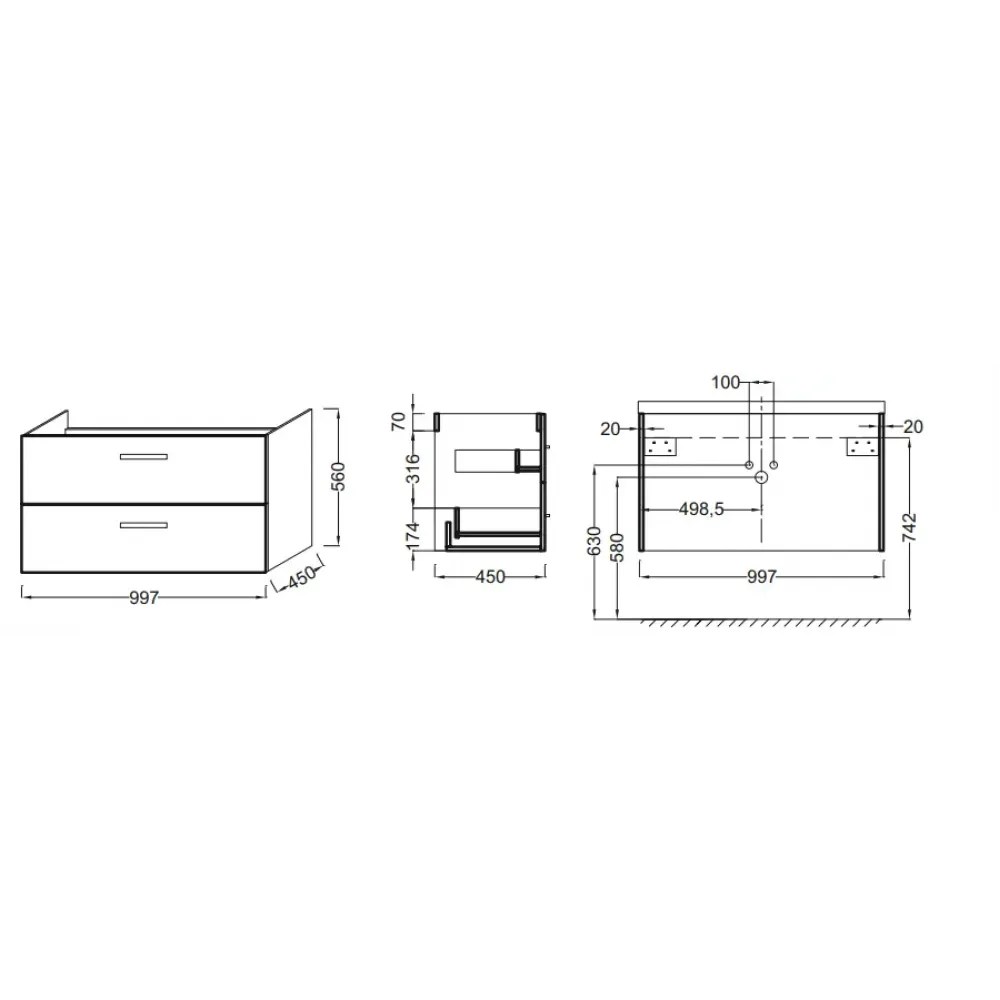 Технические характеристики Модуль под раковину Ola 99,6х45х56 см, тёмный дуб EB392RU-NR Jacob Delafon