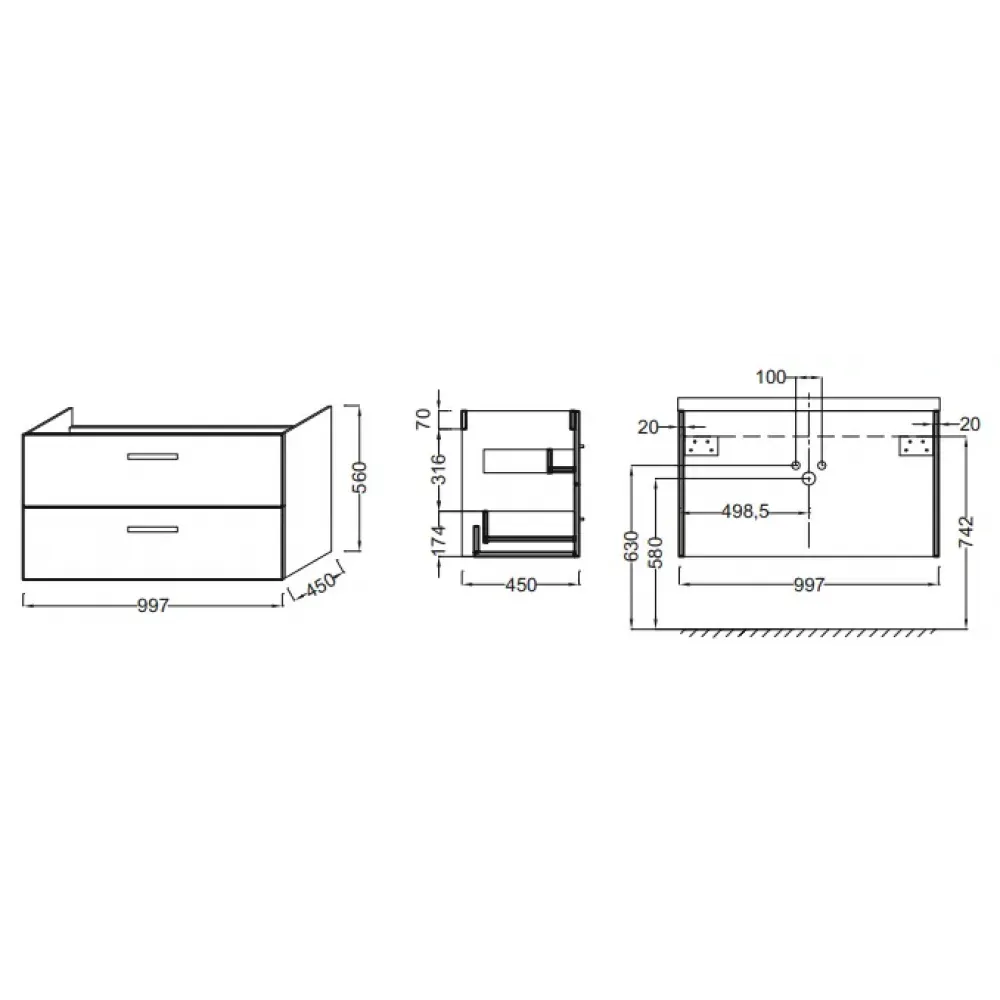 Ola 99,7х45х56см, модуль под раковину, серый антрацит , арт. EB392RU-N14, Jacob Delafon