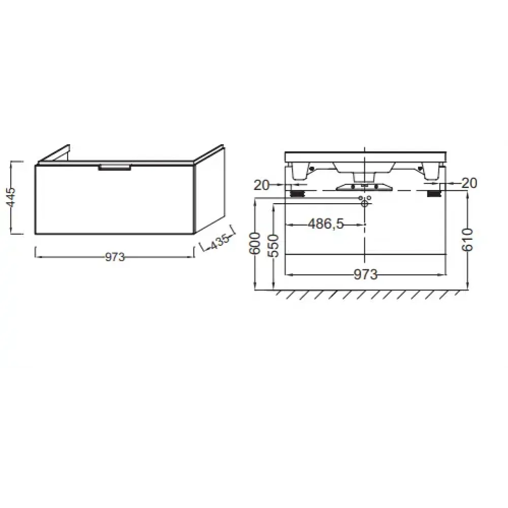 Технические характеристики Модуль под раковину Reve 100х43,5х44,5 см, черный блестящий, 1 выдвижной ящик EB1132-R-274 Jacob Delafon