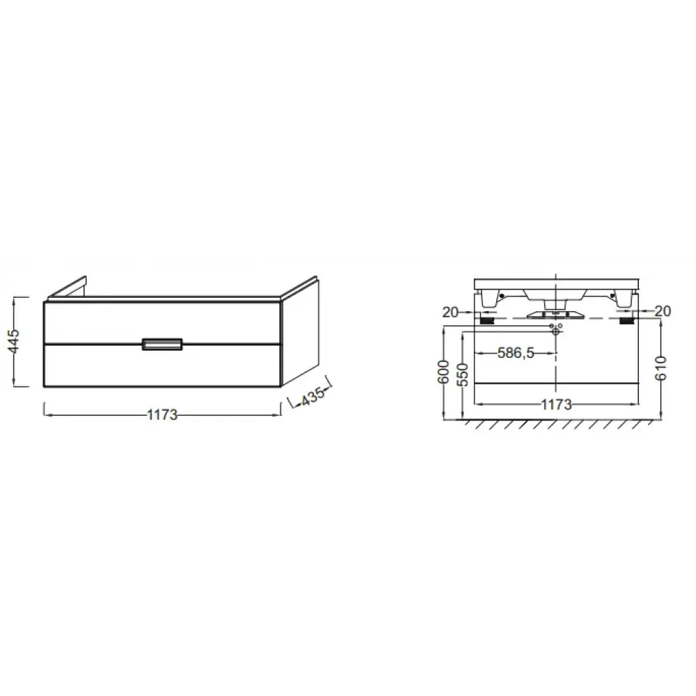 Технические характеристики Модуль под раковину Reve 117х43,5х44,5 см, белый блестящий лак EB1137-G1C Jacob Delafon