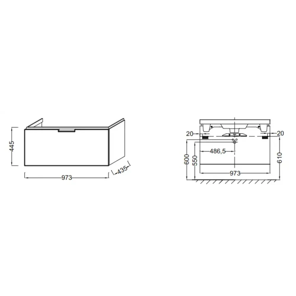 Технические характеристики Модуль под раковину Reve 97,3х43,5х44,5 см, белый блестящий, 1 выдвижной ящик EB1132-G1C Jacob Delafon