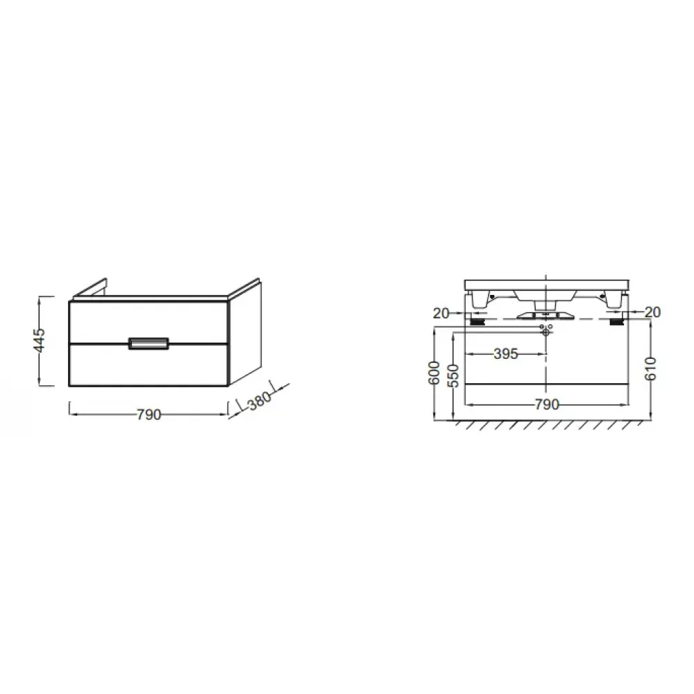 Технические характеристики Модуль под раковину Reve 97х43,5х44,5 см, белый блестящий лак, 2 выдвижных ящика EB1136-G1C Jacob Delafon