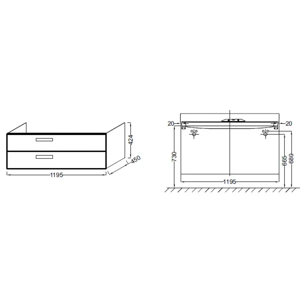 Технические характеристики Модуль под раковину Rythmik 119,5х45х42,4 см, серый антрацит, 2 выдвижных ящика EB1305-N14 Jacob Delafon