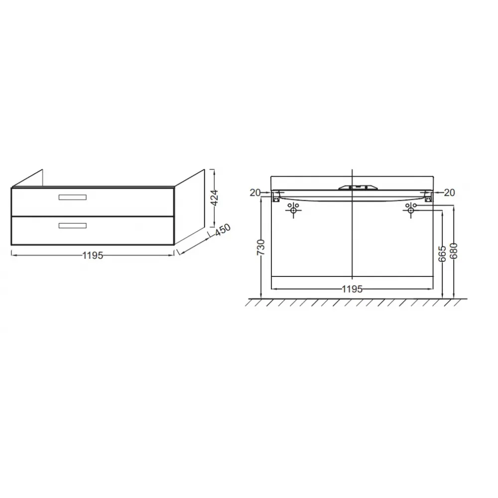 Технические характеристики Модуль под раковину Rythmik 119,5х45х42,4 см, серый антрацит блестящий, 2 выдвижных ящика EB1305-442 Jacob Delafon