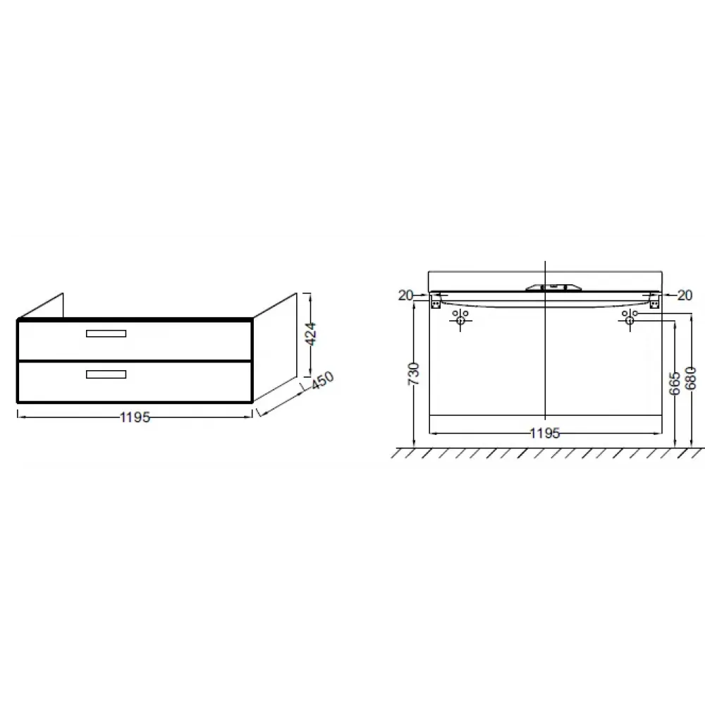 Технические характеристики Модуль под раковину Rythmik 119,5х45х42,4 см, светло-коричневый блестящий, 2 выдвижных ящика EB1305-G80 Jacob Delafon