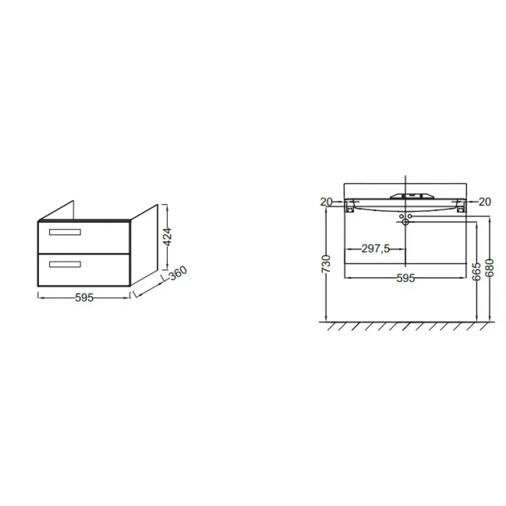 Технические характеристики Модуль под раковину Rythmik 59,5х36х42,4 см, белый блестящий лак, 2 выдвижных ящика EB1300-G1C Jacob Delafon
