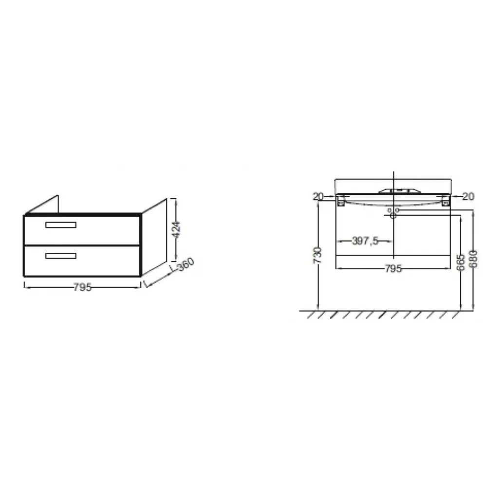 Технические характеристики Модуль под раковину Rythmik 79,5х36х42,4 см, 2 ящика, серая кожа EB1302-N29 Jacob Delafon