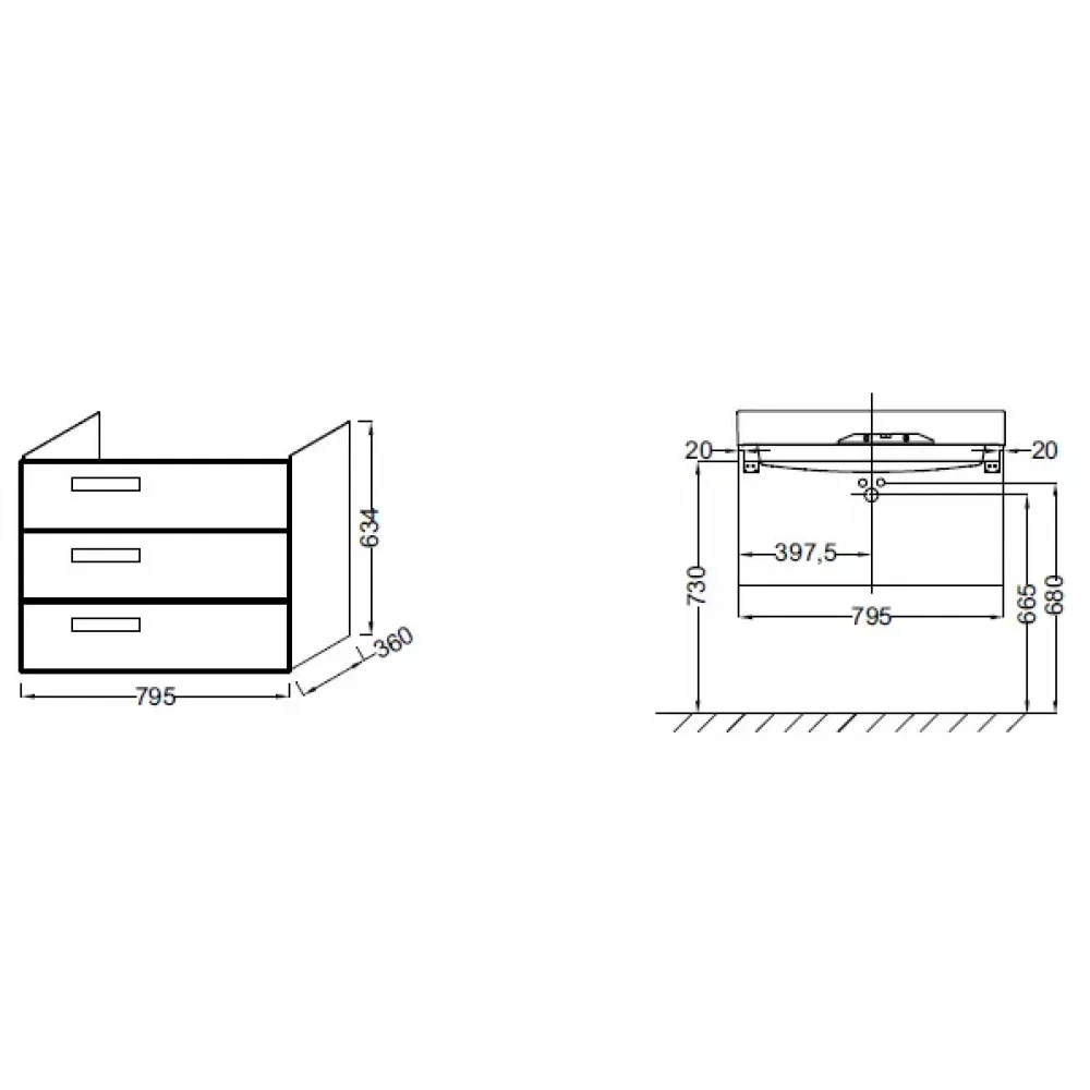 Технические характеристики Модуль под раковину Rythmik 79,5х36х63,4 см, 3 выдвижных ящика, квебекский дуб EB1308-E10 Jacob Delafon
