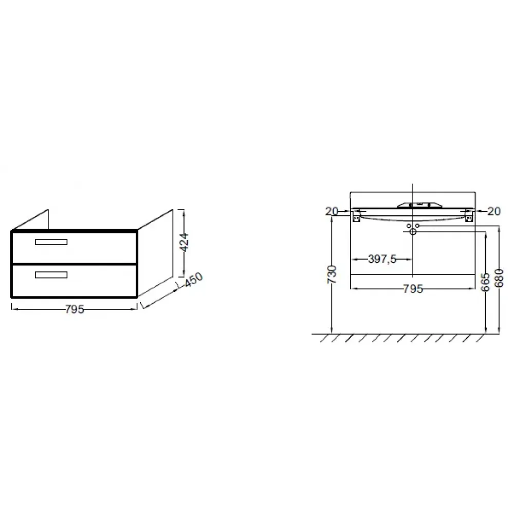Технические характеристики Модуль под раковину Rythmik 79,5х45х42,4 см, серая кожа, 2 выдвижных ящика EB1303-N29 Jacob Delafon