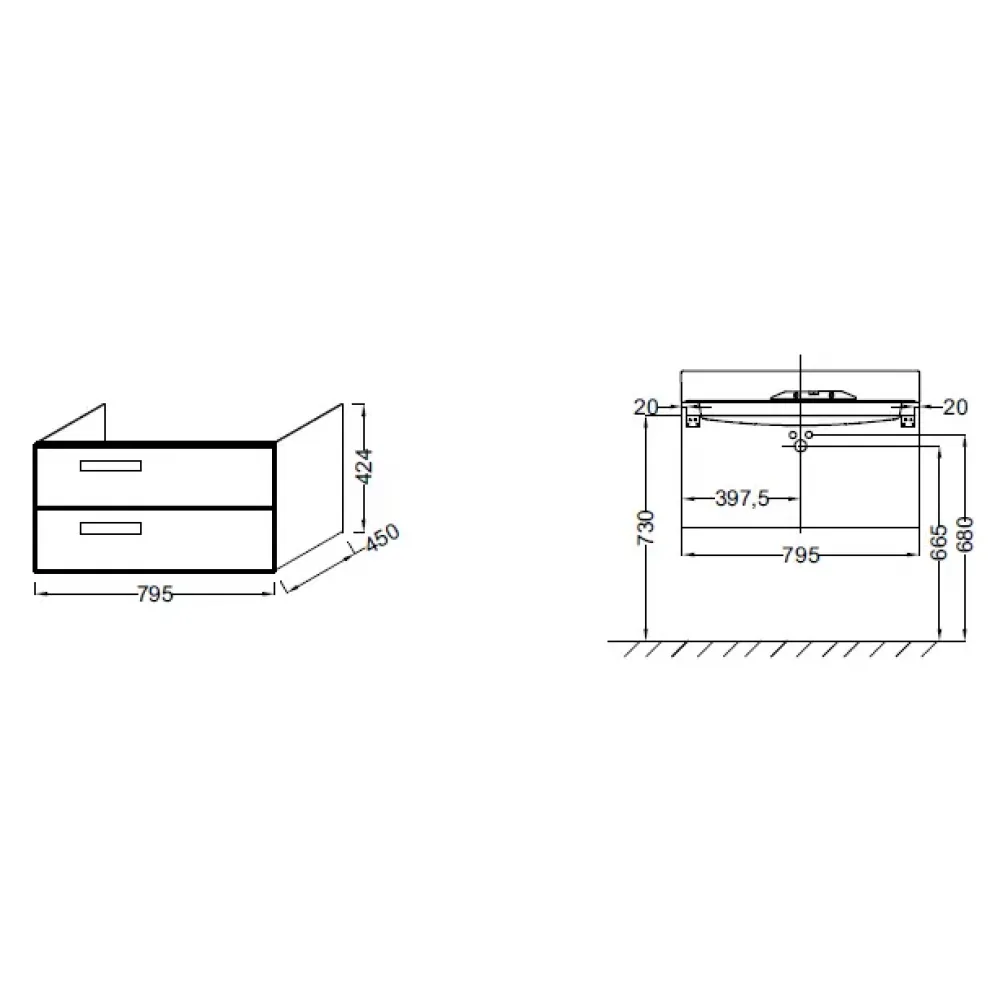Технические характеристики Модуль под раковину Rythmik 79,5х45х42,4 см, светло-коричневый блестящий лак, 2 ящика EB1303-G80 Jacob Delafon
