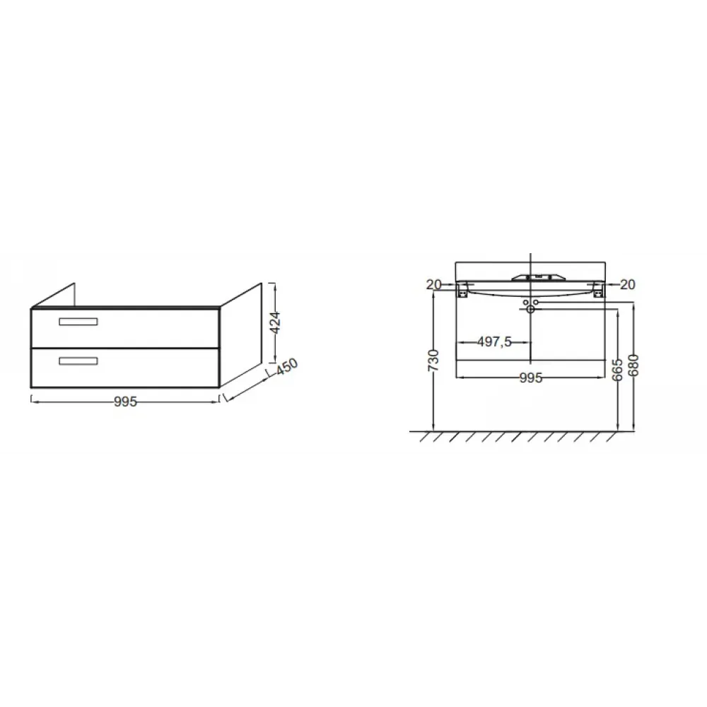 Технические характеристики Модуль под раковину Rythmik 99,5х45х42,4 см, арлингтонский дуб EB1304-E70 Jacob Delafon