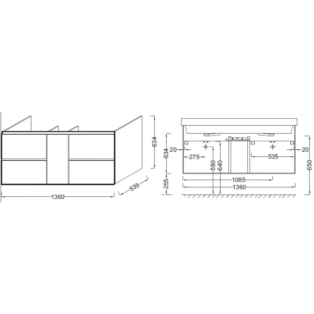 Технические характеристики Модуль под раковину Soprano 136х53,5х63,4 см, квебекский дуб, 4 ящика, 1 дверца EB1332-E10 Jacob Delafon
