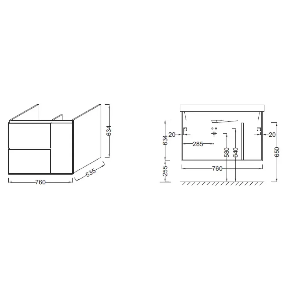 Технические характеристики Модуль под раковину Soprano 76х53,5х63,4 см, фасад квебекский дуб, корпус матовый базальт, 2 выдвижных ящика, 1 дверца EB1330-N08-E10 Jacob Delafon