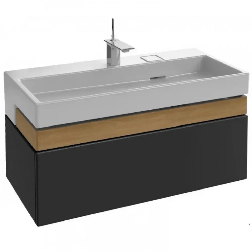 Terrace 100х48х38см, модуль под раковину, система push-to-open, черный матовый, верхний ящик из цельного дерева, арт. EB1187-M61, Jacob Delafon