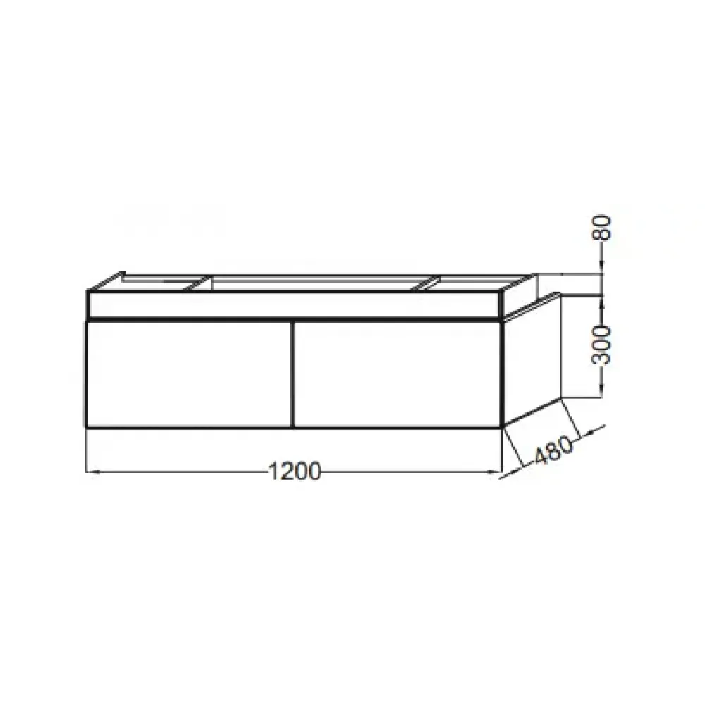Технические характеристики Модуль под раковину Terrace 120х48х38 см, черный матовый, верхний ящик из цельного дерева, система push-to-open EB1188-M61 Jacob Delafon