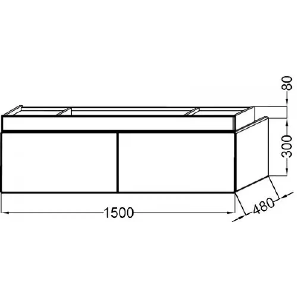 Технические характеристики Модуль под раковину Terrace 150х48х38 см, 2 розетки, белый блестящий, верхний ящик из цельного дерева, система push-to-open EB1734RU-G1C Jacob Delafon
