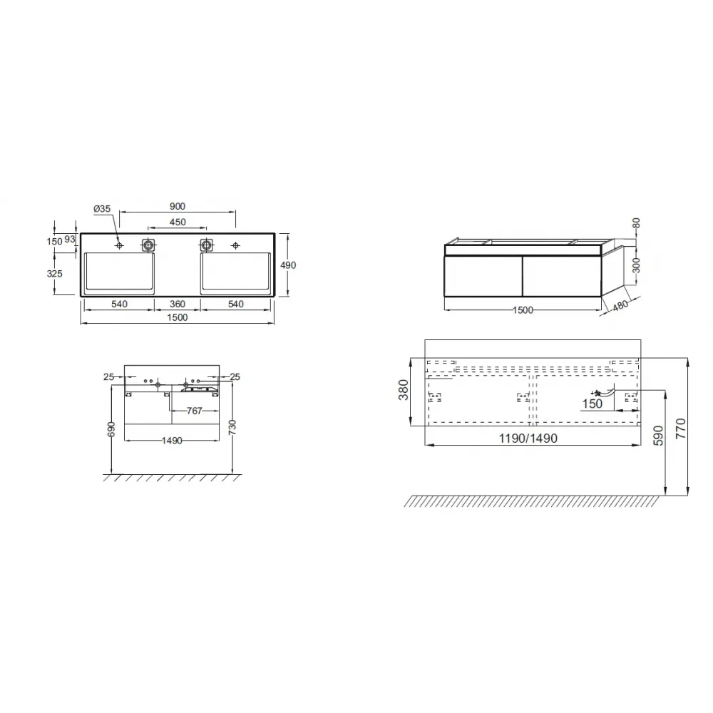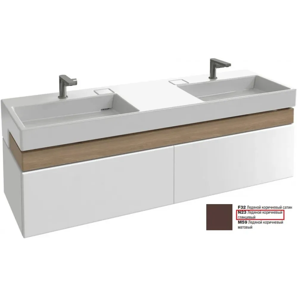 Технические характеристики Модуль под раковину Terrace 150х48х38 см, 2 розетки, ледяной коричневый глянцевый, верхний ящик из цельного дерева, система push-to-open EB1734RU-N23 Jacob Delafon